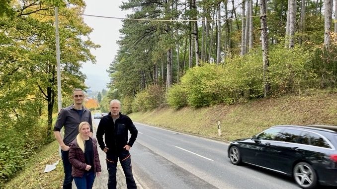 _Das Ehepaar Menzel und Stefan Müller vom Bauamt der Stadt Buchen hoffen darauf, dass die neue „Eichhörnchenbrücke“ Richtung Hainstadt – ein einfaches Kunsthanfseil in fünf Metern Höhe – von den Tieren zur Querung der Straße auch angenommen wird. (Foto: pm)_