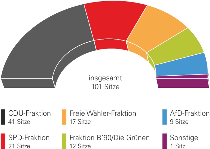Der neuen Verbandsversammlung gehören 41 Mitglieder der CDU, 21 der SPD, der Fraktion der Freien Wähler (FW) stehen 17 Sitze zu, Bündnis 90/Die Grünen entsendet zwölf Vertreter, die AfD-Fraktion hat neun Sitze und auf Sonstige entfällt ein Sitz.