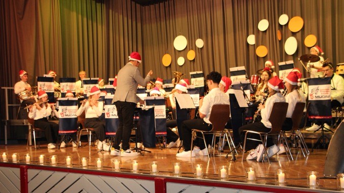 Die traditionelle Eröffnung des Abends lag in den Händen des musikalischen Nachwuchses. Neu und beeindruckend war die gelungene Kooperation der Jugendkapellen aus Mudau und Limbach. Unter der Leitung von Julia Pittner und Patrick Schulz spielten 33 junge Musikerinnen und Musiker anspruchsvolle Stücke wie „Böhmische Premiere“, „Let It Go“ und Auszüge aus „Aladin“, was das Publikum begeisterte. Die humorvolle Moderation aus den eigenen Reihen, begleitet von kleinen Sketchen aus der Kennenlern- und Probenzeit, unterstrich die harmonische Zusammenarbeit der beiden Jugendkapellen. Eine weihnachtliche Zugabe mit Nikolausmützen rundete ihren Auftritt stimmungsvoll ab.