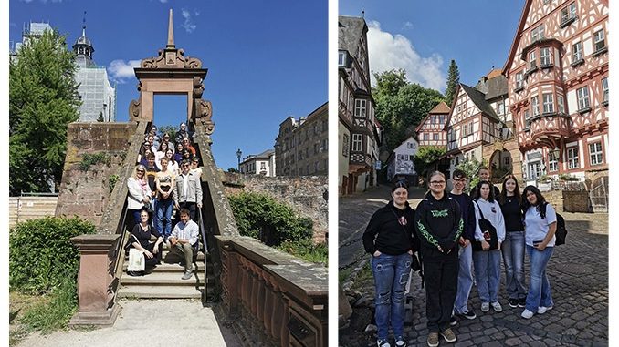 Das linke Bild zeigt die Geschichtsforscher Breuberg und das Team der Burglandschaft e.V. mit den Irischen Projektpartnern des St. Leo’s College in Carlow beim Besuch von Schloss Johannisburg, Aschaffenburg. Auf der rechten Aufnahme sind die Geschichtsforscher Breuberg in der Miltenberger Altstadt unterwegs, um im Rahmen des Erasmus-Projekts „Geschichte ist Zukunft“ interkulturell Geschichte zu erleben. (Fotos: pm)