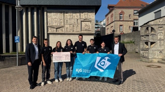 Die Vertreter der KjG Osterburken freuen sich im Beisein von Bürgermeister Jürgen Galm sowie Sparkassendirektor Martin Graser über die großzügige Spende in Höhe von 2.500 Euro. (Foto: pm)