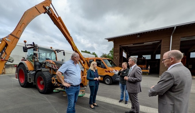 „Wir sind für fast 400 Kilometer Straßennetz zuständig“ erklärt Ulli Binnig von der Straßenmeisterei. Gemeinsam mit Landrat Dr. Brötel und Kreiskämmerer Michael Schork bedankt er sich bei Nina Warken für die aktive Unterstützung der Bauprojekte in Berlin. Nicht ohne darauf hinzuweisen, dass der Antrag für die Sanierung des Salzhauses schon bei ihrem Ministerkollegen in Berlin liegen würde. Warken lobt die zuverlässige Arbeit der Straßenmeisterei vor Ort. Ihre Stimme als Wahlkreisabgeordnete wird sie weiterhin laut und deutlich zum Wohl der Bürgerinnen und Bürger in Berlin einbringen.