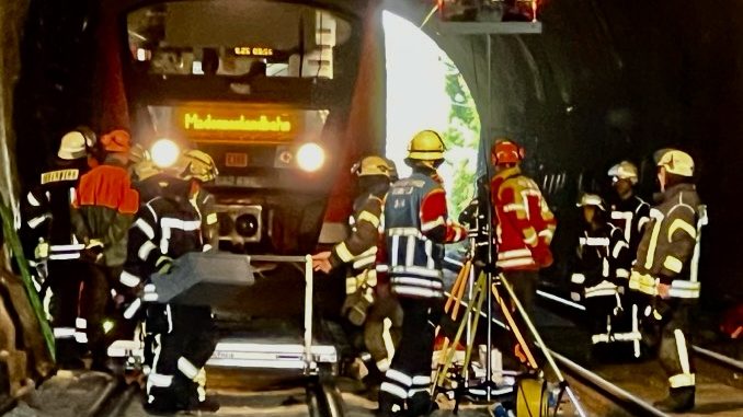 Während die Bahn den Betrieb einstellte, die Oberleitung erdete und zusätzliche Sicherungsmaßnahmen traf, beseitigte die Feuerwehr Bäume, leuchtete den Tunnel aus und schaffte Zugänge. Parallel richteten die Sanitäter einen Patientenablageplatz ein und begannen mit der Versorgung.