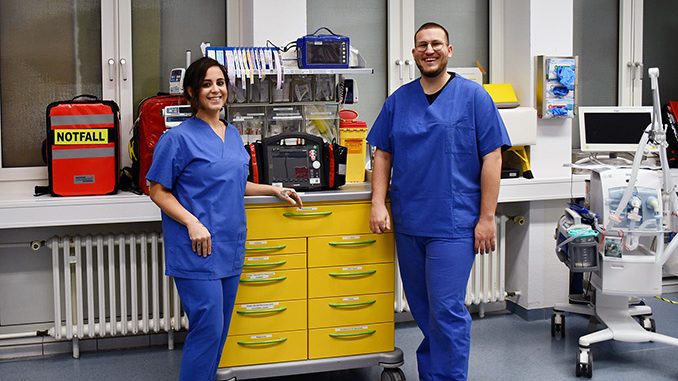 Eberbach. (pm) Niklas Kesch und Rosa Antonia Bogado Ramirez Ferreira, Pflegende in der Zentralen Notaufnahme (ZNA) der GRN-Klinik Eberbach, haben im Oktober erfolgreich die Fachweiterbildung Notfallpflege abgeschlossen. Dieser Schritt unterstreicht eine wesentliche Weiterentwicklung der beruflichen Qualifikation und trägt maßgeblich zur Qualitätsentwicklung in der notfallpflegerischen Versorgung der ZNA bei.