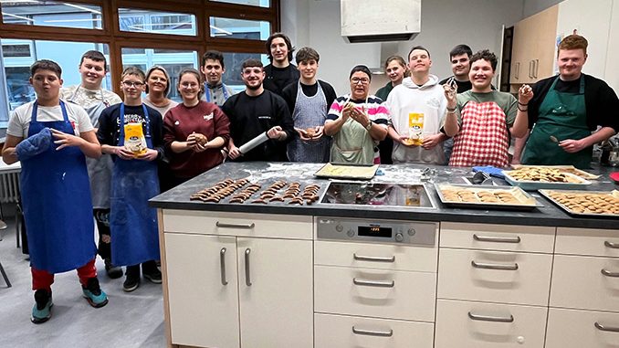 Studierende der Firma Mosca und Schüler der Johannesberg Schule trafen sich zu einer Plätzchenbackaktion. (Foto: Tanja Bauer)